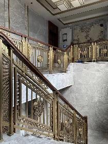 別墅銅藝樓梯-銅樓梯欄桿色彩變化:銅欄桿會(huì)隨著時(shí)間的推移逐漸氧化,形成獨(dú)特的綠色或青銅色,增添了古樸 ..